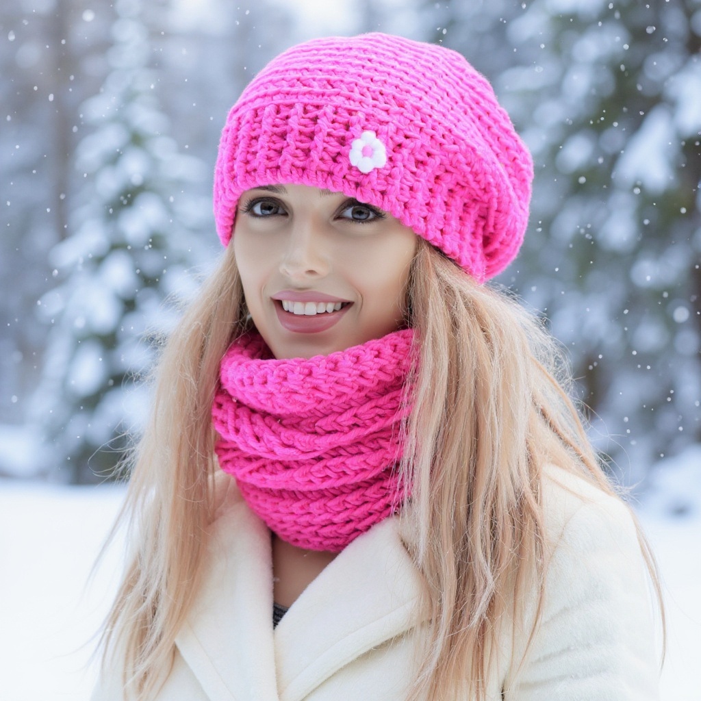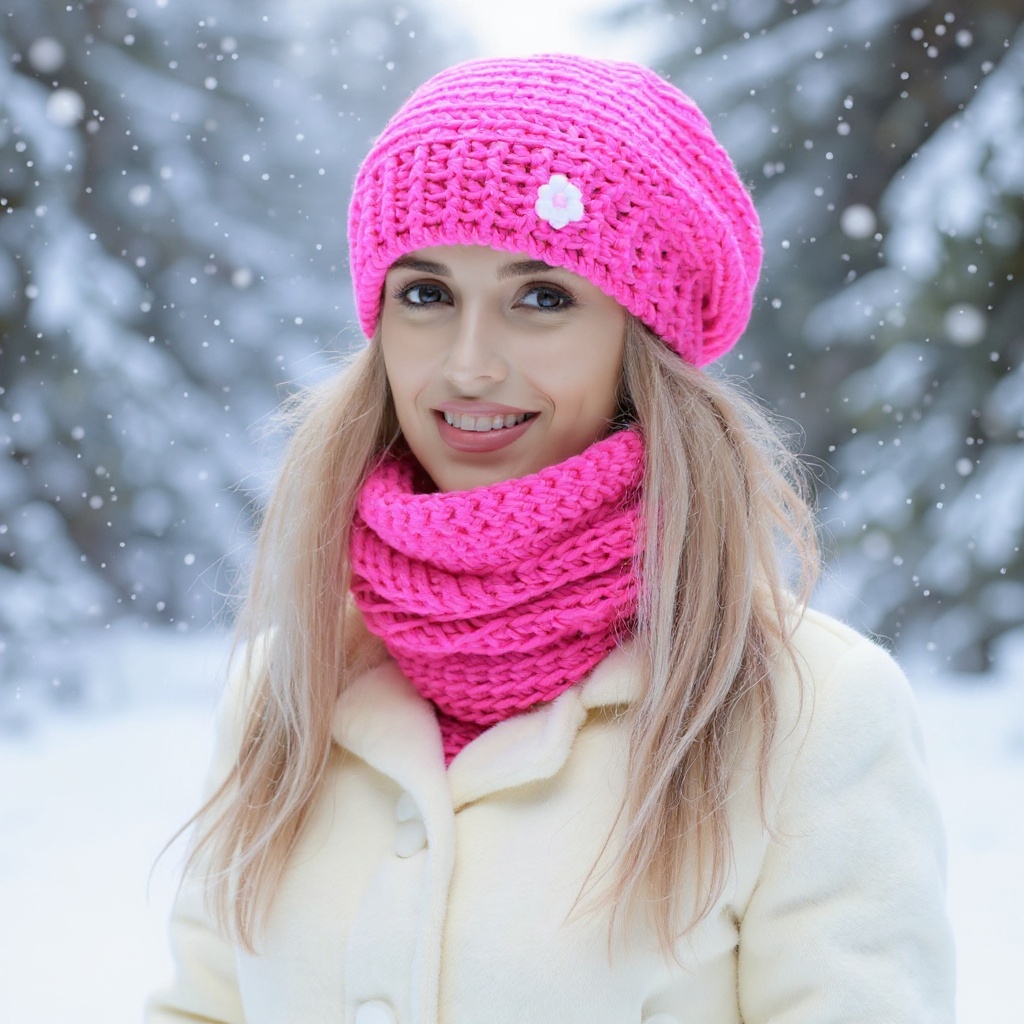 Baretová souprava háčkovaná z akrylové příze v nádherné fuschiové barvičce