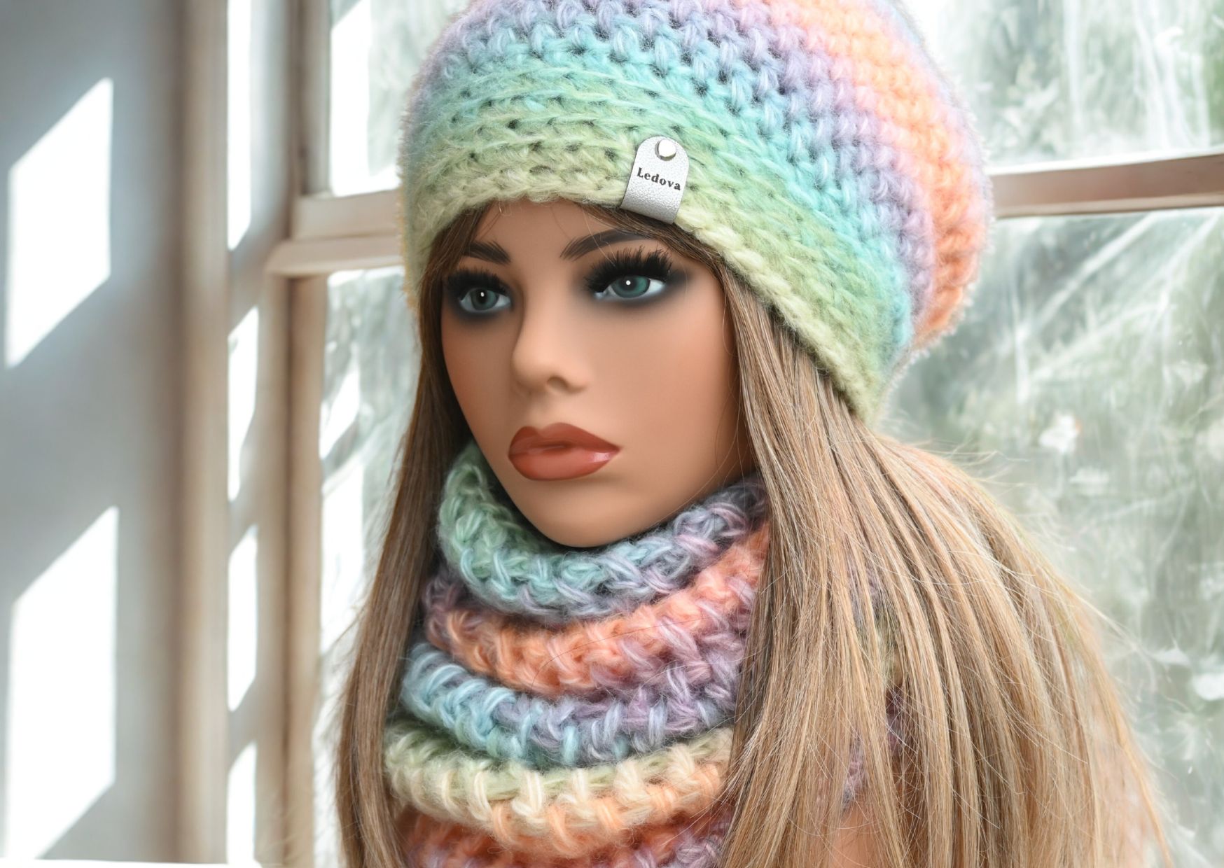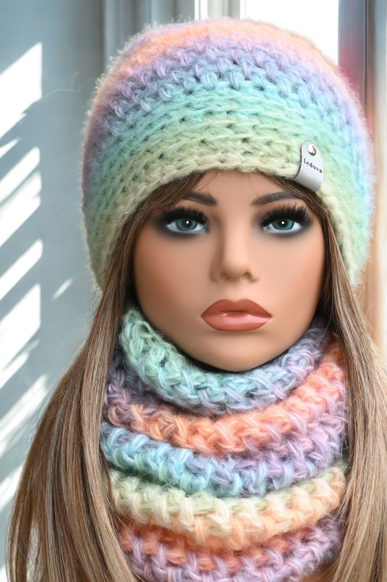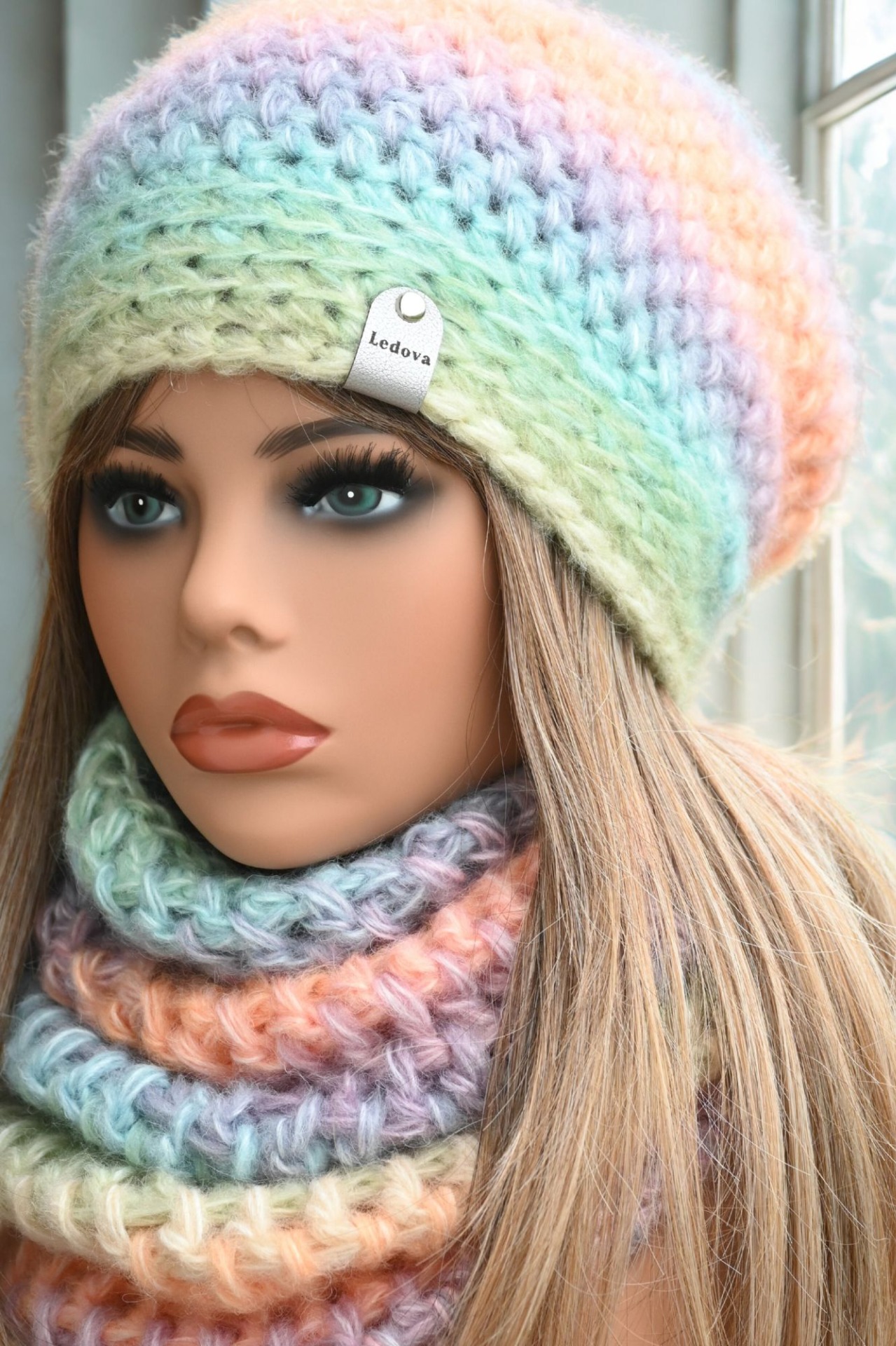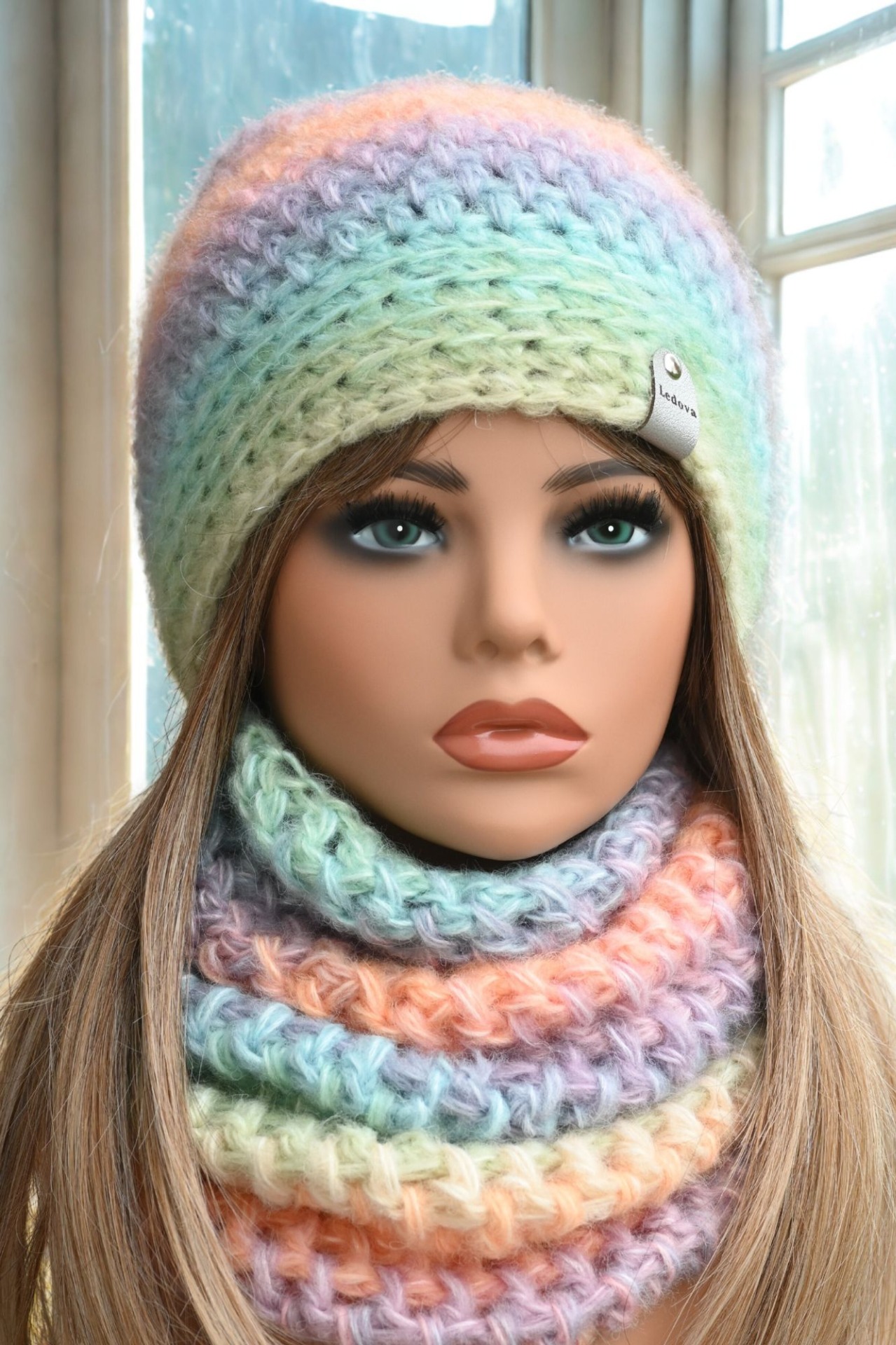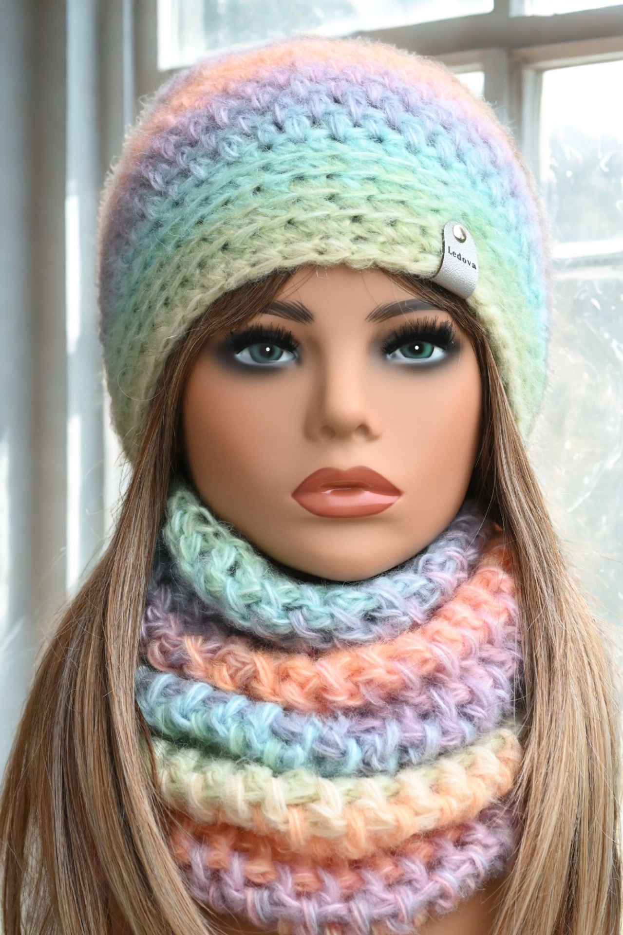 Na čelní straně je čepice ozdobena štítkem ze silné koženky s logem Ledova. Vhodná je pro obvod hlavy od 54 do 57 cm, a tak skvěle padne nejen ženám, ale i větším slečnám.