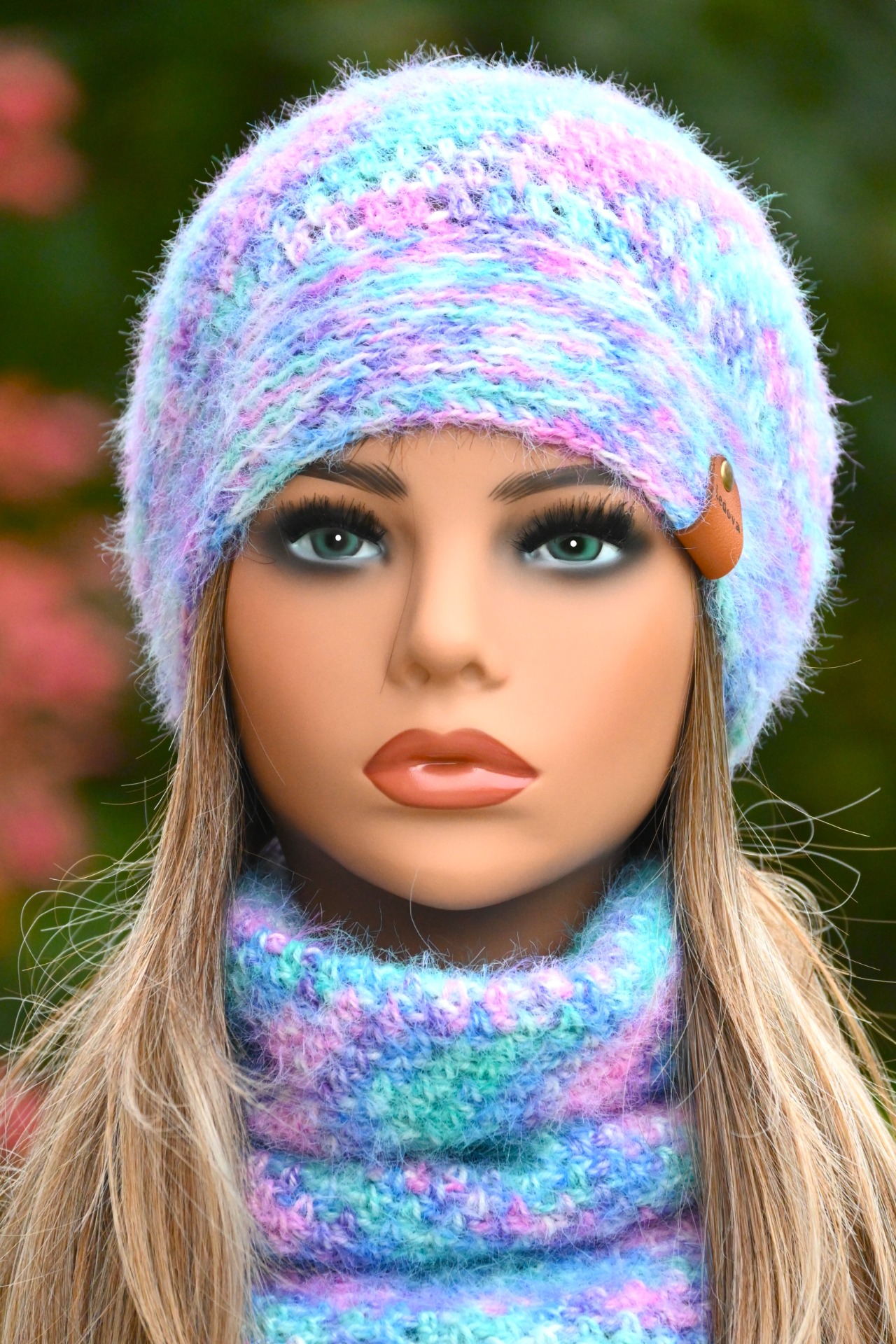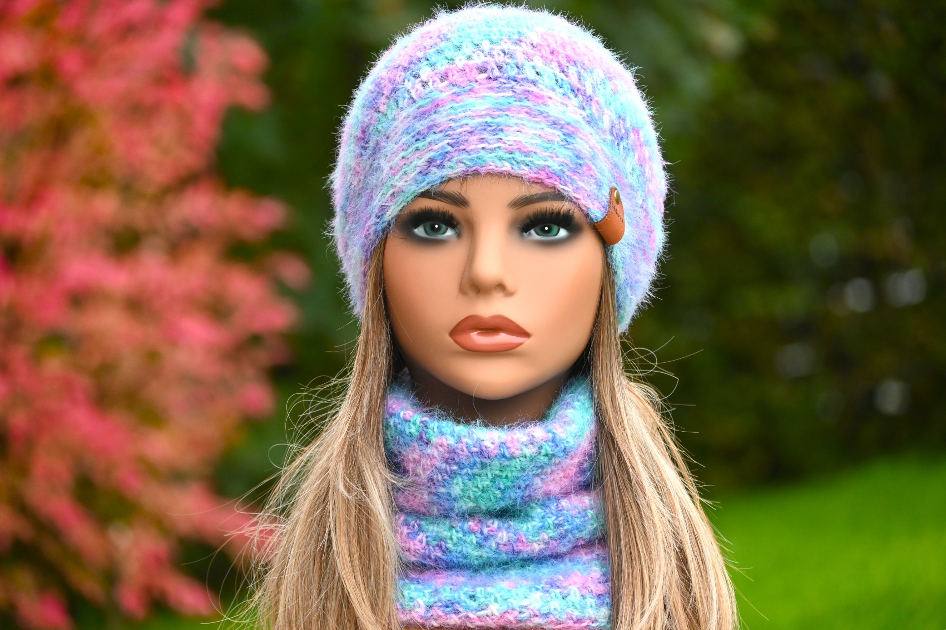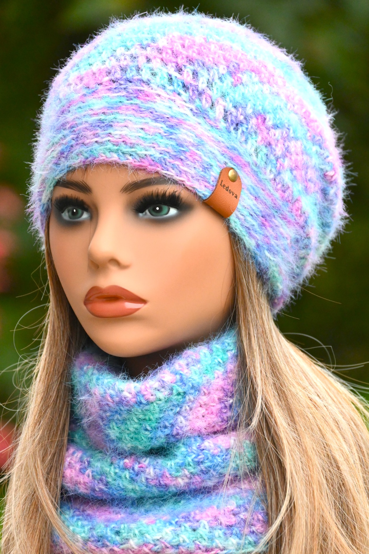 Háčkovaná souprava čepice s nákrčníkem z chlupatkové příze – hřejivý set pro zimní dny