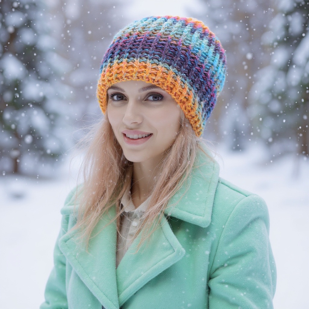 háčkovaná čepice z akrylové příze s příměsí vlny 20%