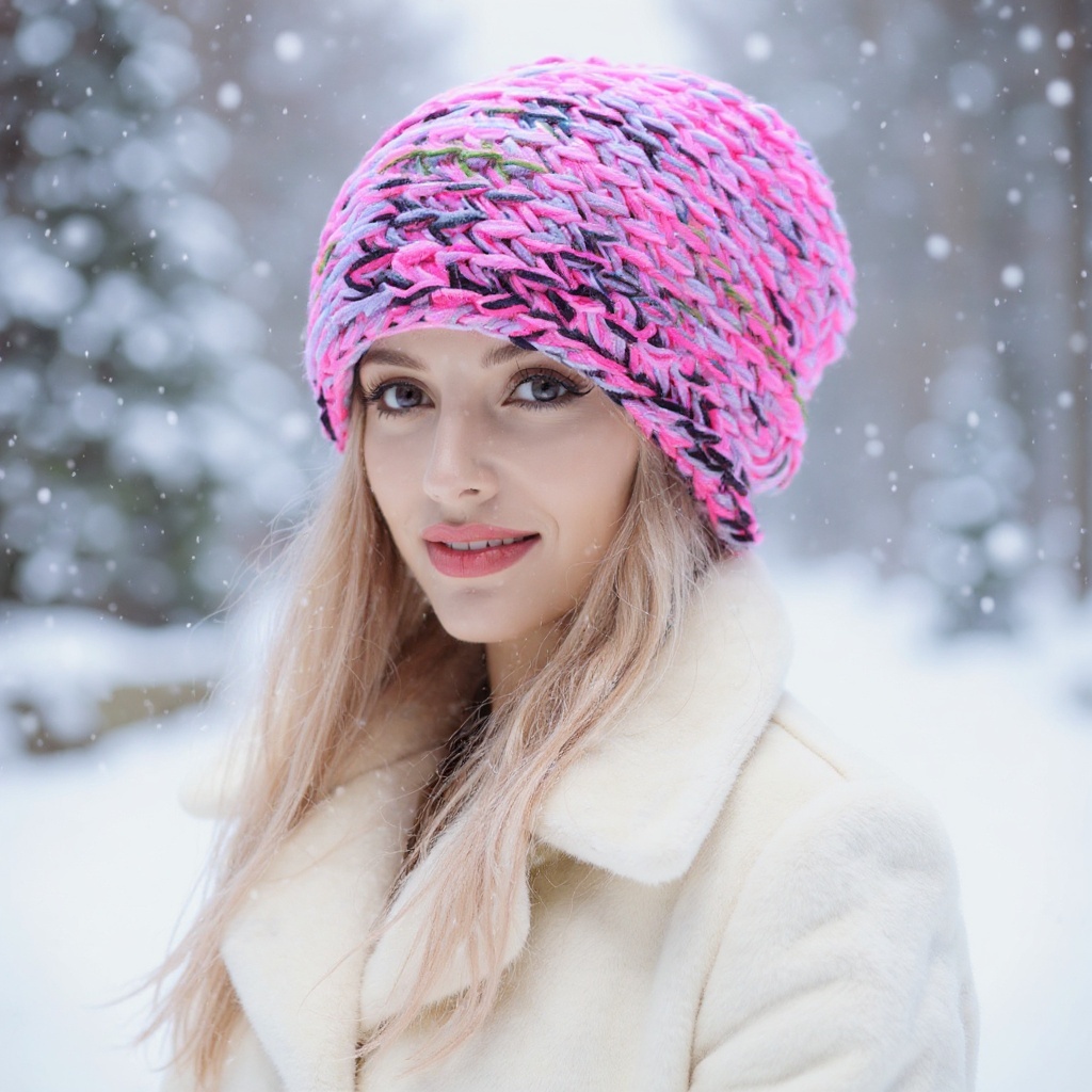 Háčkovaná dámská i dívčí čepice z velmi silné akrylové příze