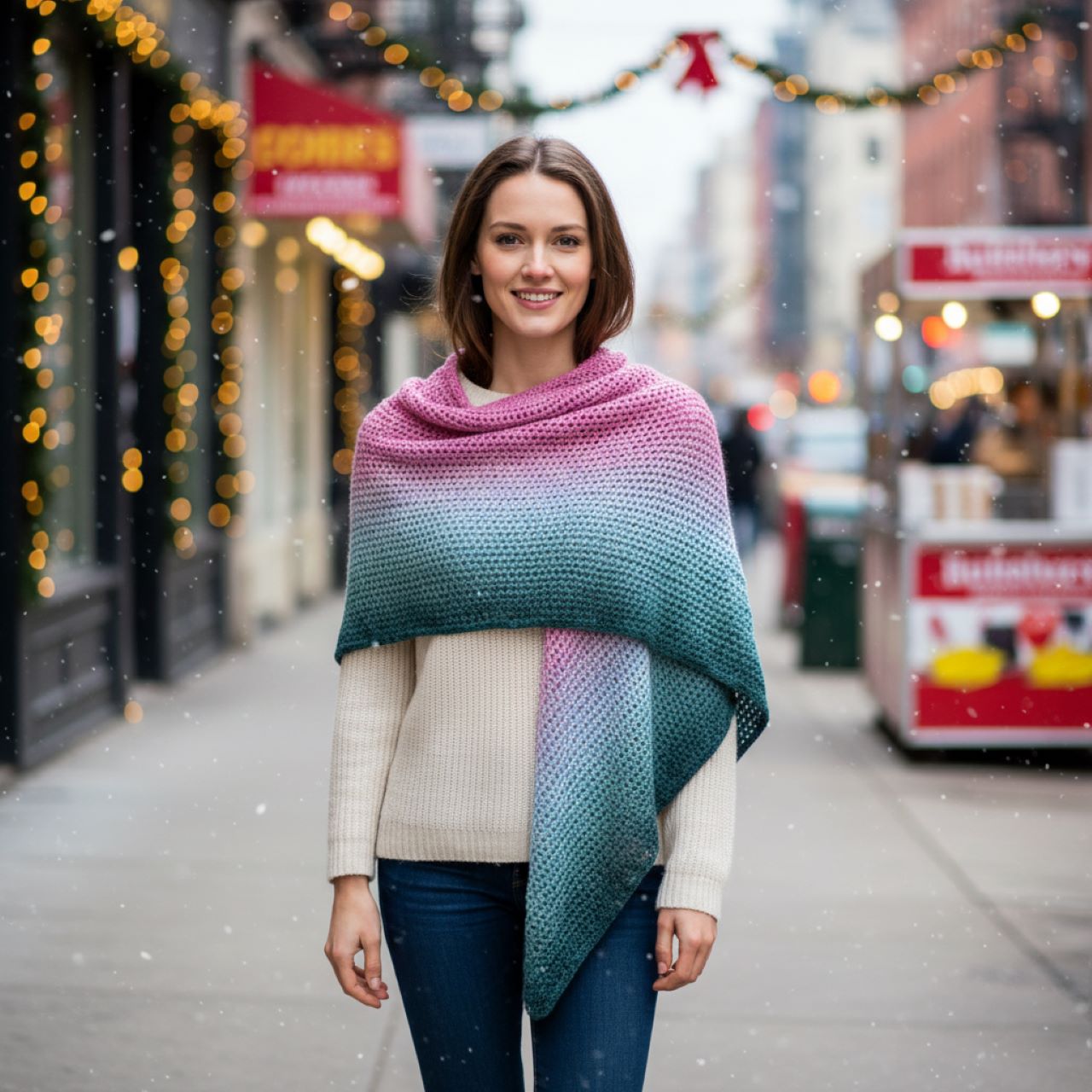 Šátek se dá nosit na spousty způsobů, v létě jako pareo, pléd přez ramena, v zimě jako velmi hustě nařasený šátek kolem krku, úžasně vypadající šikmo nošený přez ramena na zimních kabátech a v létě přez ramena třeba na šaty