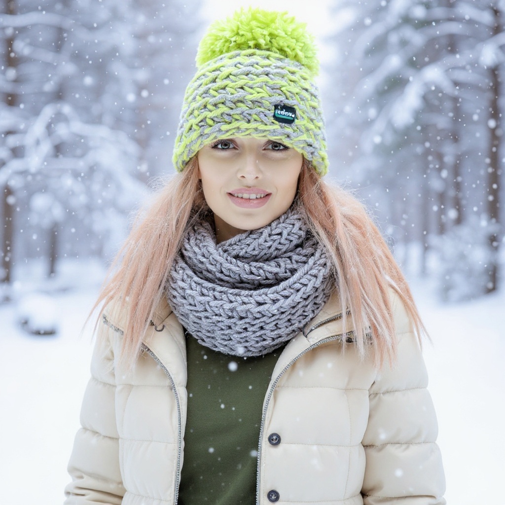 HÁČKOVANÁ SOUPRAVA KULÍŠKU, NÁKRČNÍKU A BEZPRSTOVÝCH RUKAVIČEK ZE SILNÉ ABSOLUTNĚ HEBOUČKÉ AKRYLOVÉ PŘÍZE