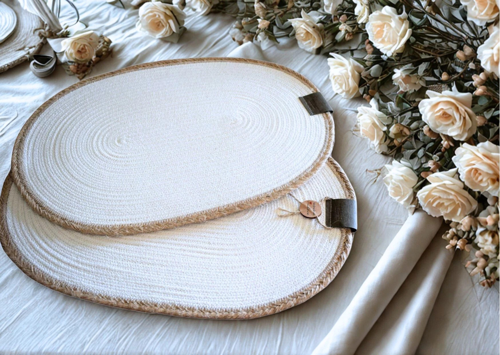 Sada 8 kusů oválného prostírání z kroucených bavlněných provazů na přání.