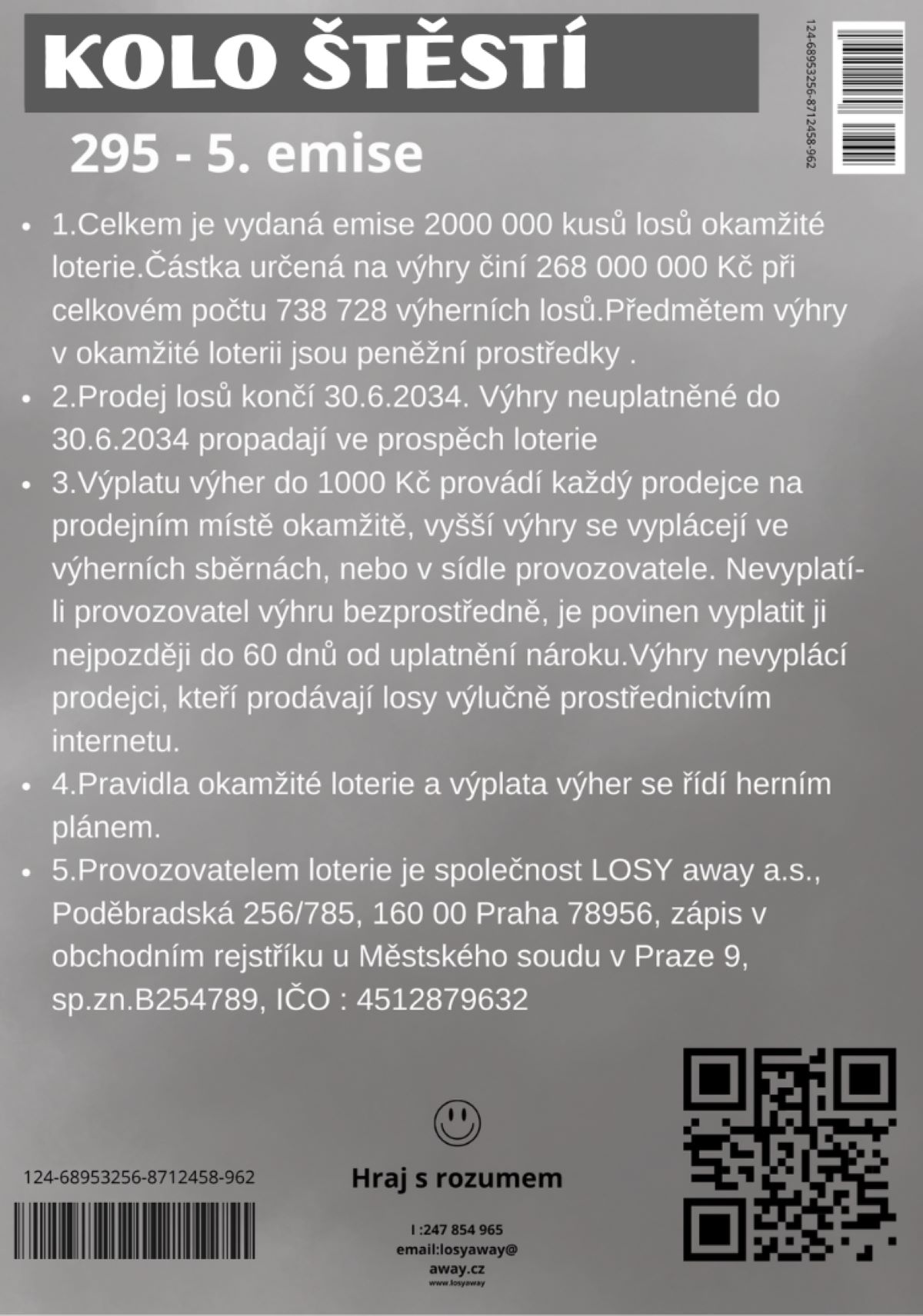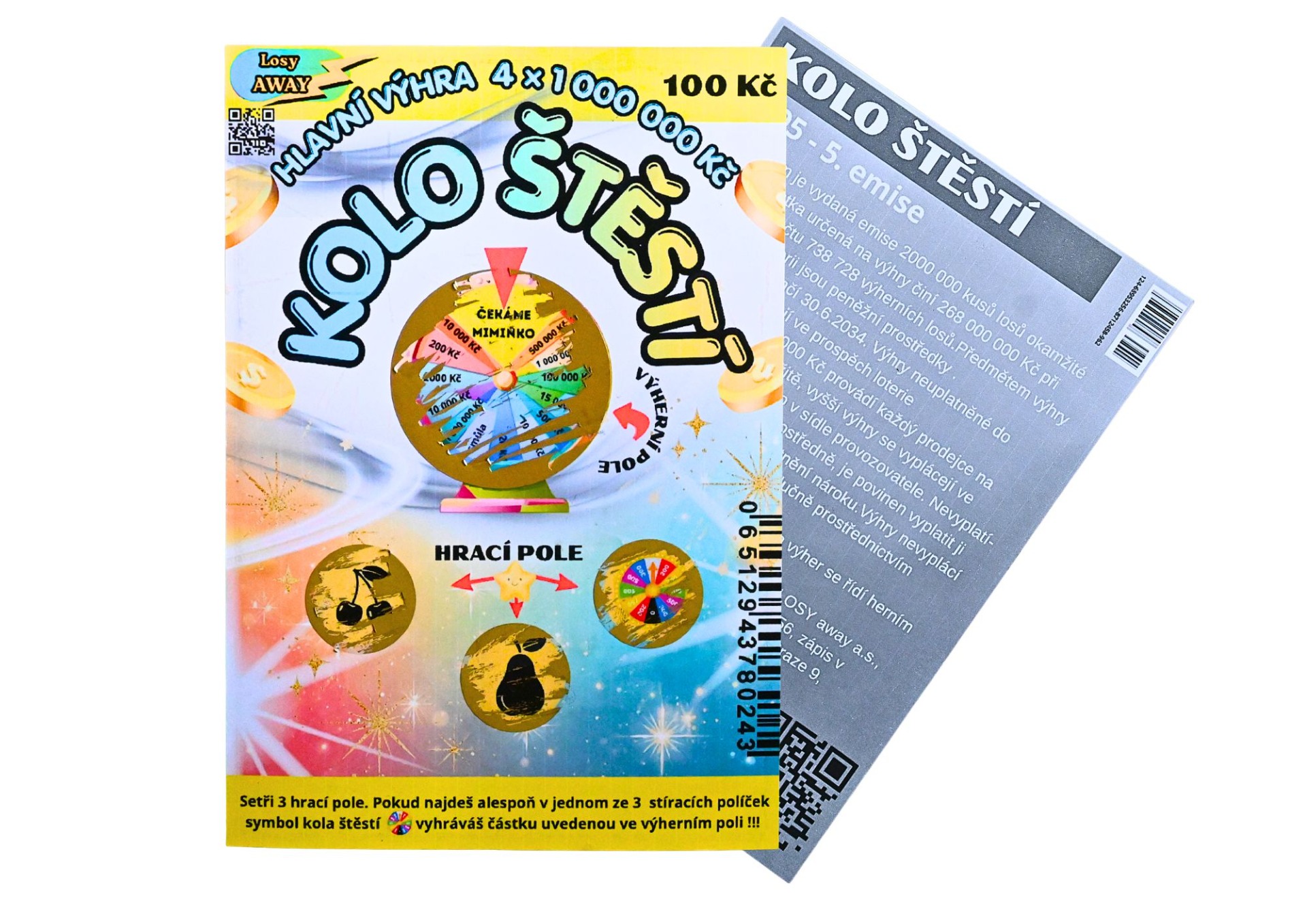 Los je tištěn na fotopapíru v gramáži 210g/m2 a má dvě stírací pole.