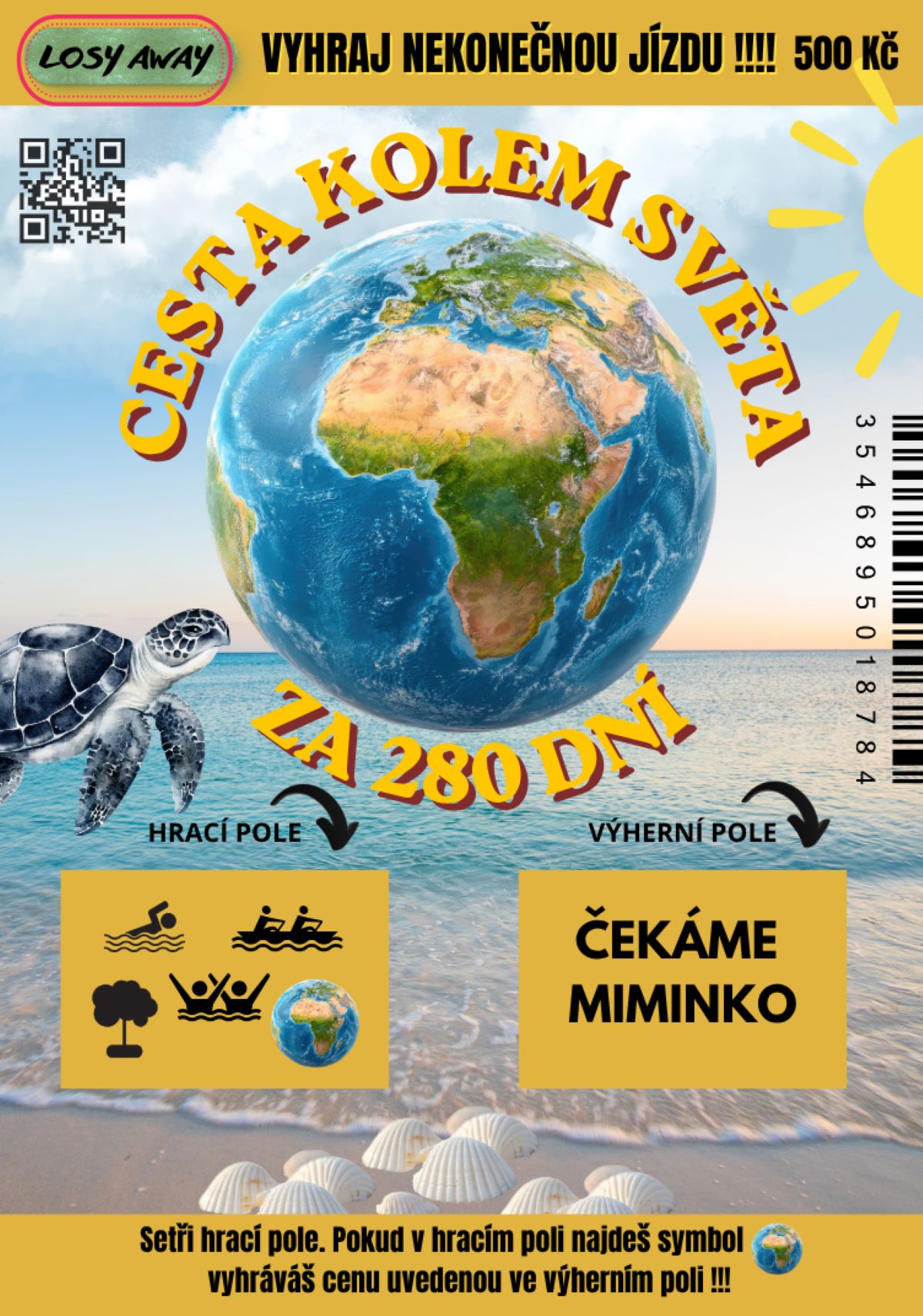 Stírací los CESTA KOLEM SVĚTA ZA 280 DNÍ pro vtipné rodinné sdělení ČEKÁME MIMINKO