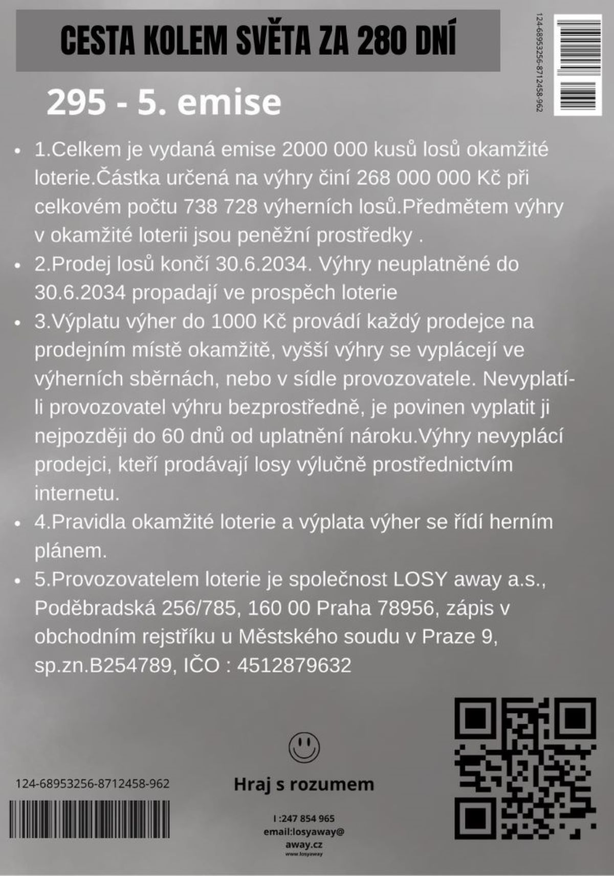 Los je tištěn na fotopapíru v gramáži 210g/m2 a má dvě stírací pole.