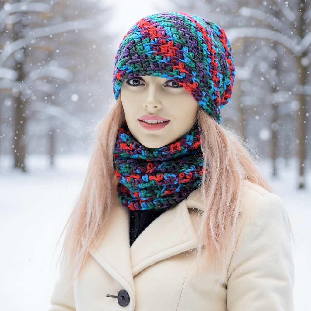 HÁČKOVANÁ SOUPRAVA ČEPICE A NÁKRČNÍKU Z AKRYLOVÉ PŘÍZE