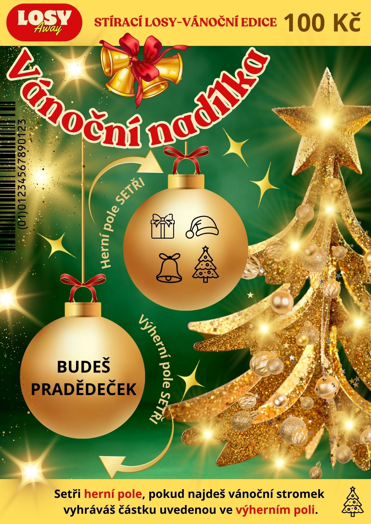 Stírací los VÁNOČNÍ NADÍLKA pro vtipné rodinné sdělení " BUDEŠ PRADĚDEČEK"